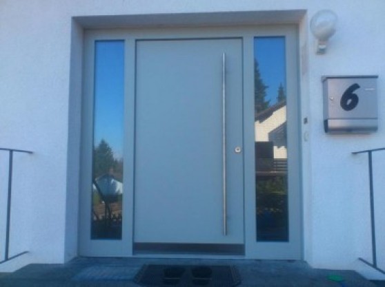 Eine Haustür, die mit der Fassade harmonisch zusammen passt und Sicherheit und Dämmungswerte bittet fertigen bzw. bauen wir gerne für Sie ein, egal ob Türen aus Holz oder Konststoff wir beraten Sie gerne.